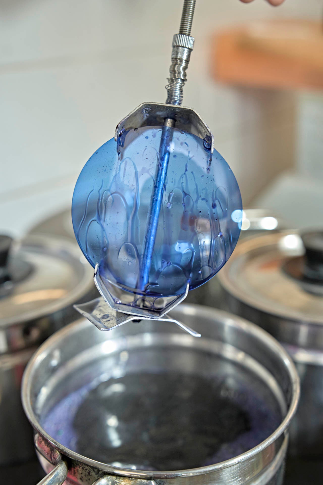 Le lenti vengono immerse in un bagno di colorante liquido riscaldato. La durata dell'immersione determina l'intensità del colore.